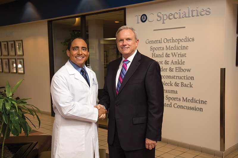 Dr. Hector A. Mejia, M.D. of Tallahassee Orthopedic Clinic and Ameris Bank Tallahassee Market President Robert Vice are both very proud of the partnership between their two businesses. Photo courtesy of Ameris Bank