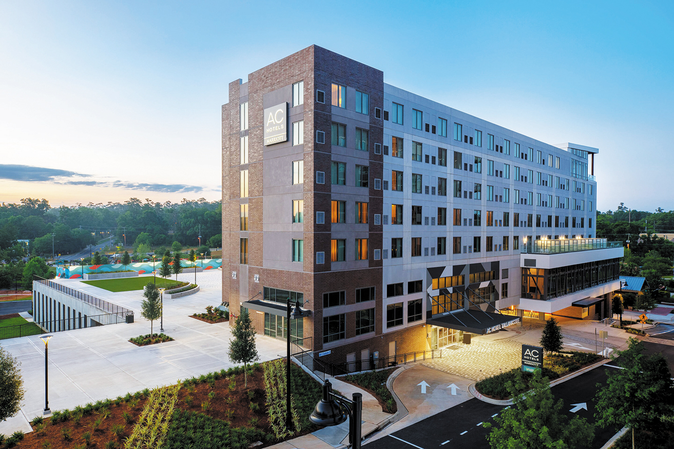 Marriott International’s 164-room AC Hotel Tallahassee has already attracted “a high guest occupancy,” said McIntyre, and its 5,000-square-foot ballroom and business meeting space is being used frequently. The rooftop bar, Charlie Park, is now open, treating visitors to craft cocktails, epicurean small plates and a bird’s-eye view of Cascades Park’s 24-acre green space.