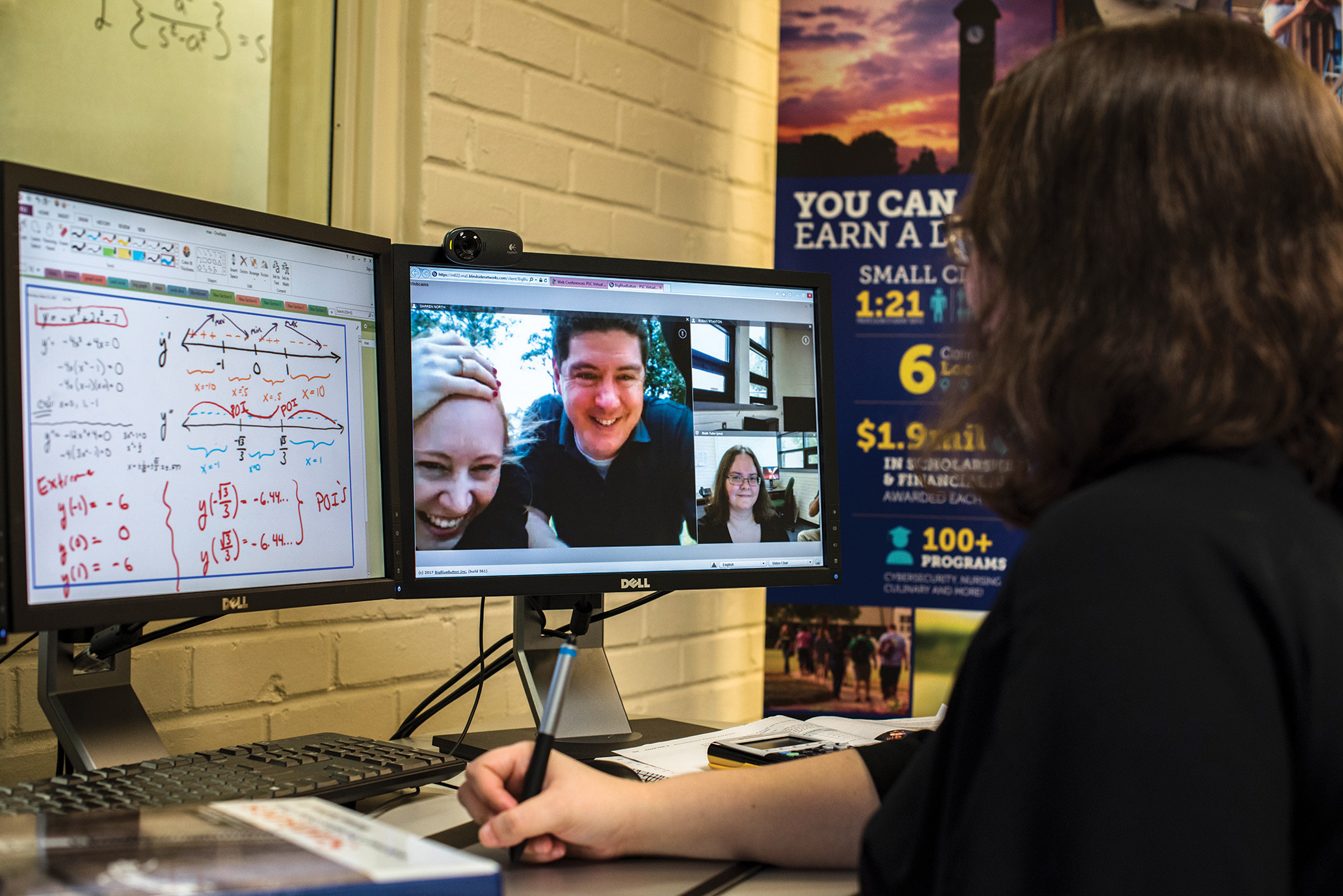 A Pensacola State College student takes notes during an online trigonometry class; PSC has made it possible for students to also attend workshops and labs virtually. Photo Courtesy of Pensacola State College